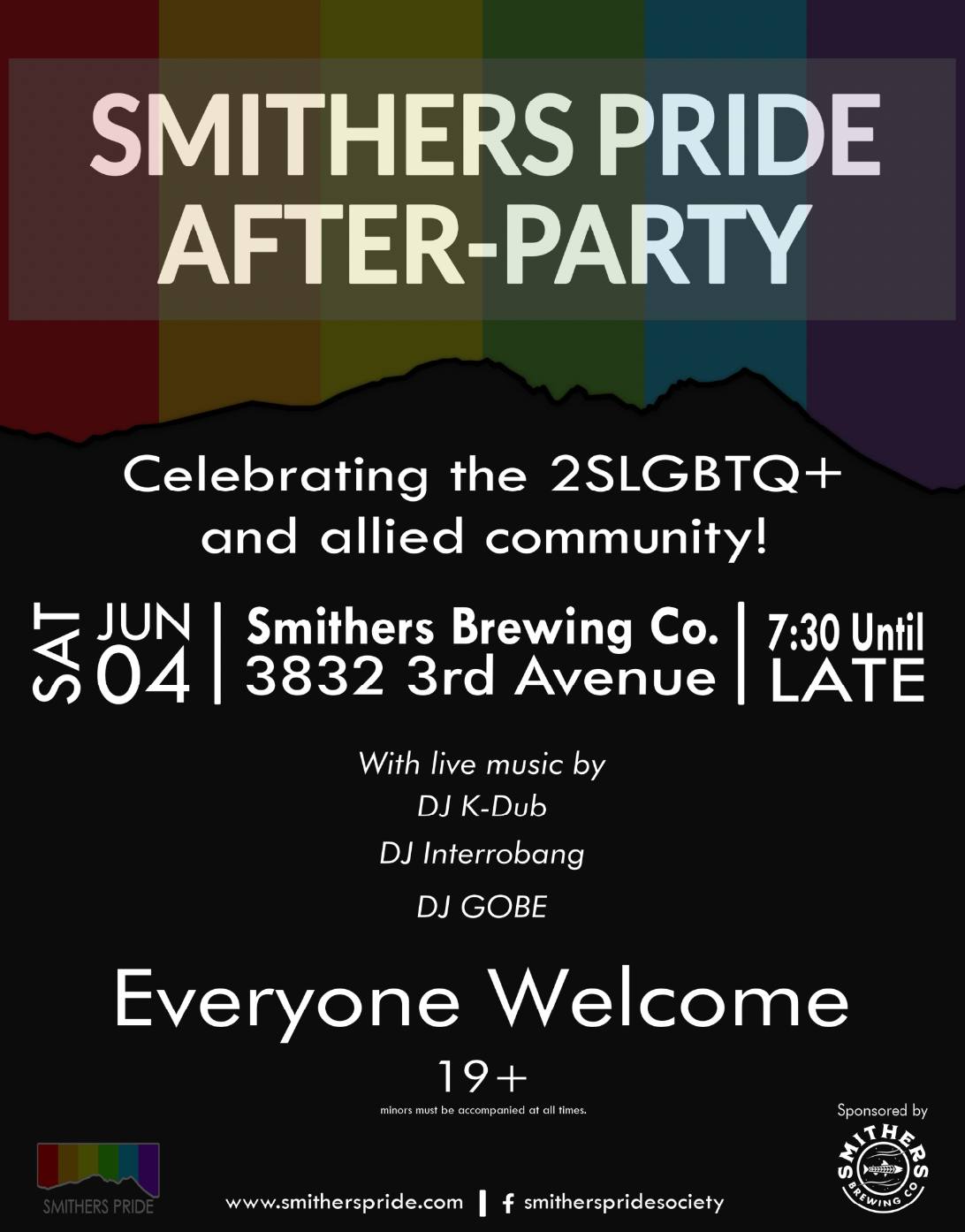 Smithers Pride Society is gearing up for its 5th Annual Smithers Pride Event. On Saturday, June 4th, 2022, folks from Northern BC and afar will gather to celebrate diversity and inclusion. The Smithers Pride Society's purposes are to initiate, create, sponsor and develop educational and cultural activities and events, on a non-profit and charitable basis; to promote the development, visibility, and pride in the 2SLGBTQ+ communities.